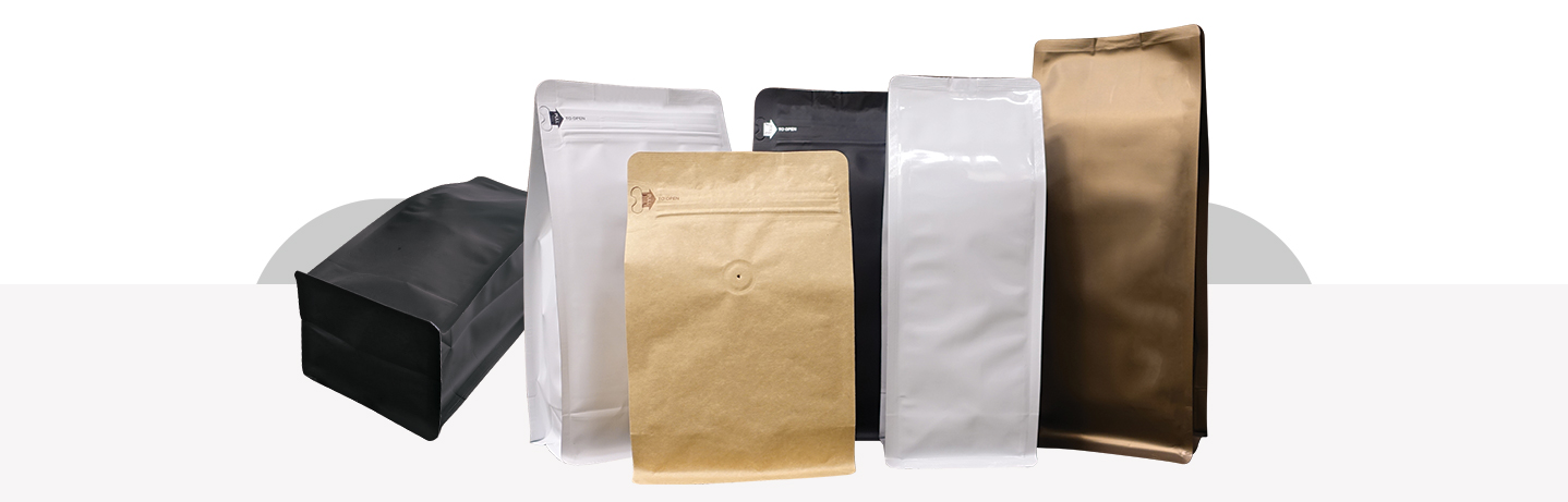 Our Square Bottom Gusseted Bags are perfect for ground or whole bean coffee and loose tea leaves. They allow even the lowest density product to sit narrow and sturdy on shelves without ever worrying about tipping over.